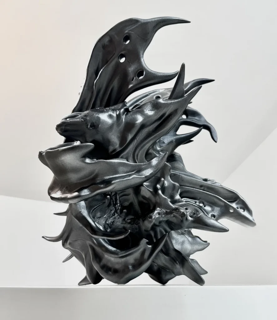 Fabricated from 3D-printed thermoplastic, post-processed via thermal manipulation, and finished with high-gloss industrial spray coating.