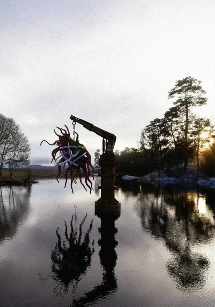 Sculpture using pigmented biological-grade silicone, flexible polymer resins, and internal steel armatures.