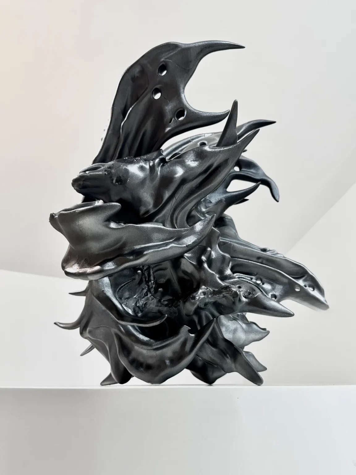 Fabricated from 3D-printed thermoplastic, post-processed via thermal manipulation, and finished with high-gloss industrial spray coating.
